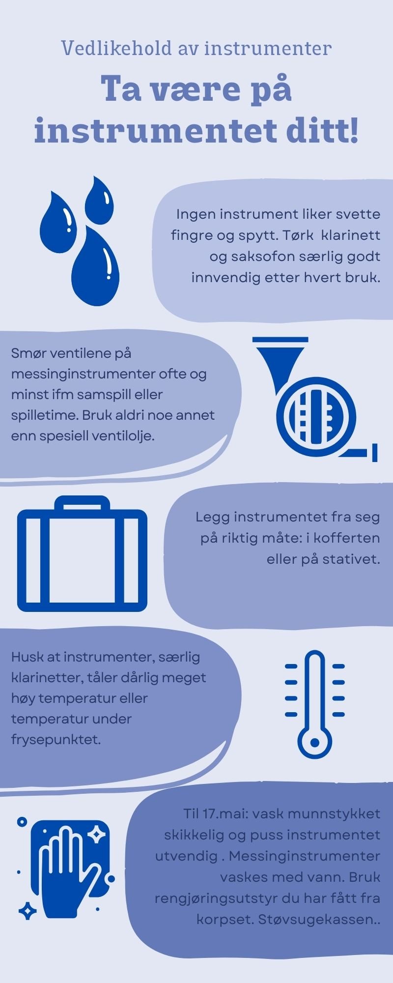 Utgifter knyttet reparasjon av instrumenter utgjør betydelig del av kostander i korpset. Følg enkle råd samlet i grafikken. Nedenfor finner du også filmer fra NMF med mange gode råd for eldre og mer erfarne musikanter.